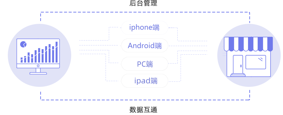 打通數(shù)據(jù)多端同步,實現(xiàn)線上線下業(yè)務(wù)全覆蓋,并通過后臺統(tǒng)一管理