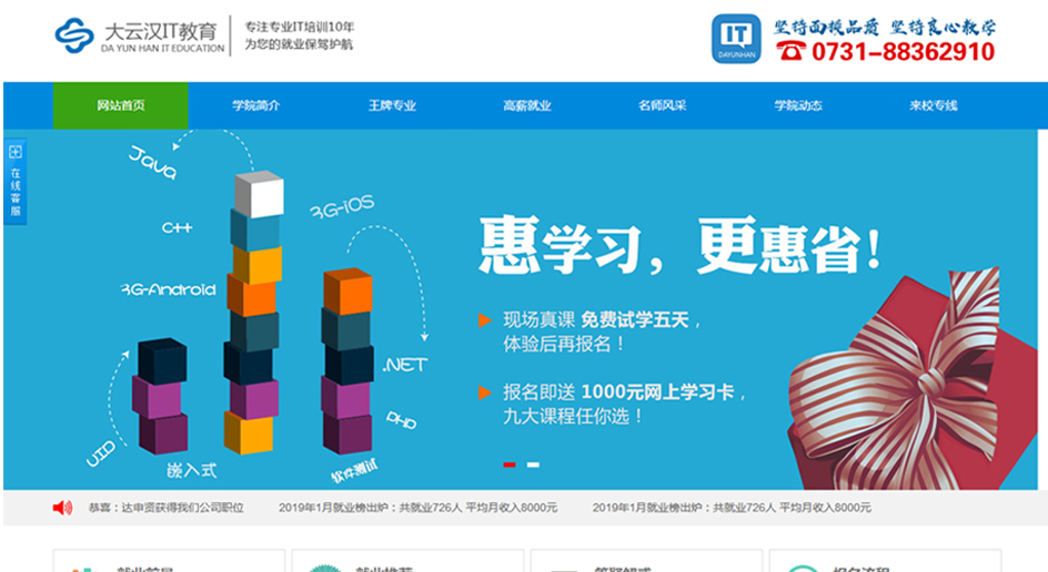 大云漢IT學(xué)院直屬于大云漢教育集團(tuán),集團(tuán)下轄教育產(chǎn)品事業(yè)部、市場就業(yè)事業(yè)部、技術(shù)研發(fā)事業(yè)部(新一代技術(shù)研發(fā)中心)、學(xué)術(shù)教質(zhì)部、學(xué)生實習(xí)實訓(xùn)部、學(xué)生思政部、后勤保障部等多個核心部門,校企合作、*共建在校學(xué)生3000余人,是新一代信息技術(shù)(軟件開發(fā)、大數(shù)據(jù)、云計算、人工智能等)研發(fā)與服務(wù)、行業(yè)內(nèi)領(lǐng)先的信息技術(shù)產(chǎn)教融合型企業(yè);是一家集實踐教學(xué)、社會培訓(xùn)、企業(yè)真實生產(chǎn)和社會技術(shù)服務(wù)于一體的高水平職業(yè)教育實訓(xùn)基地及人才服務(wù)提供基地;是*工業(yè)和信息化部授予的全國信息化工程師-NACG數(shù)字藝術(shù)人才培訓(xùn)認(rèn)證中心。前身為湖南計算機培訓(xùn)中心,成立于2009年,現(xiàn)總部位于湖南長沙黃金創(chuàng)業(yè)園,與本科院校、高職院校、中職學(xué)校開展校企合作、*共建、學(xué)生實習(xí)實訓(xùn)、畢業(yè)生頂崗實習(xí)等,培養(yǎng)了一大批新一代信息技術(shù)人才?,F(xiàn)已研發(fā)完成Python人工智能教育產(chǎn)品、新一代信息技術(shù)前端工程師教育產(chǎn)品、Java軟件開發(fā)工程師教育產(chǎn)品,具有完全自主知識產(chǎn)權(quán),先后獲得15項*專利授權(quán)和7項軟件著作權(quán)登記。